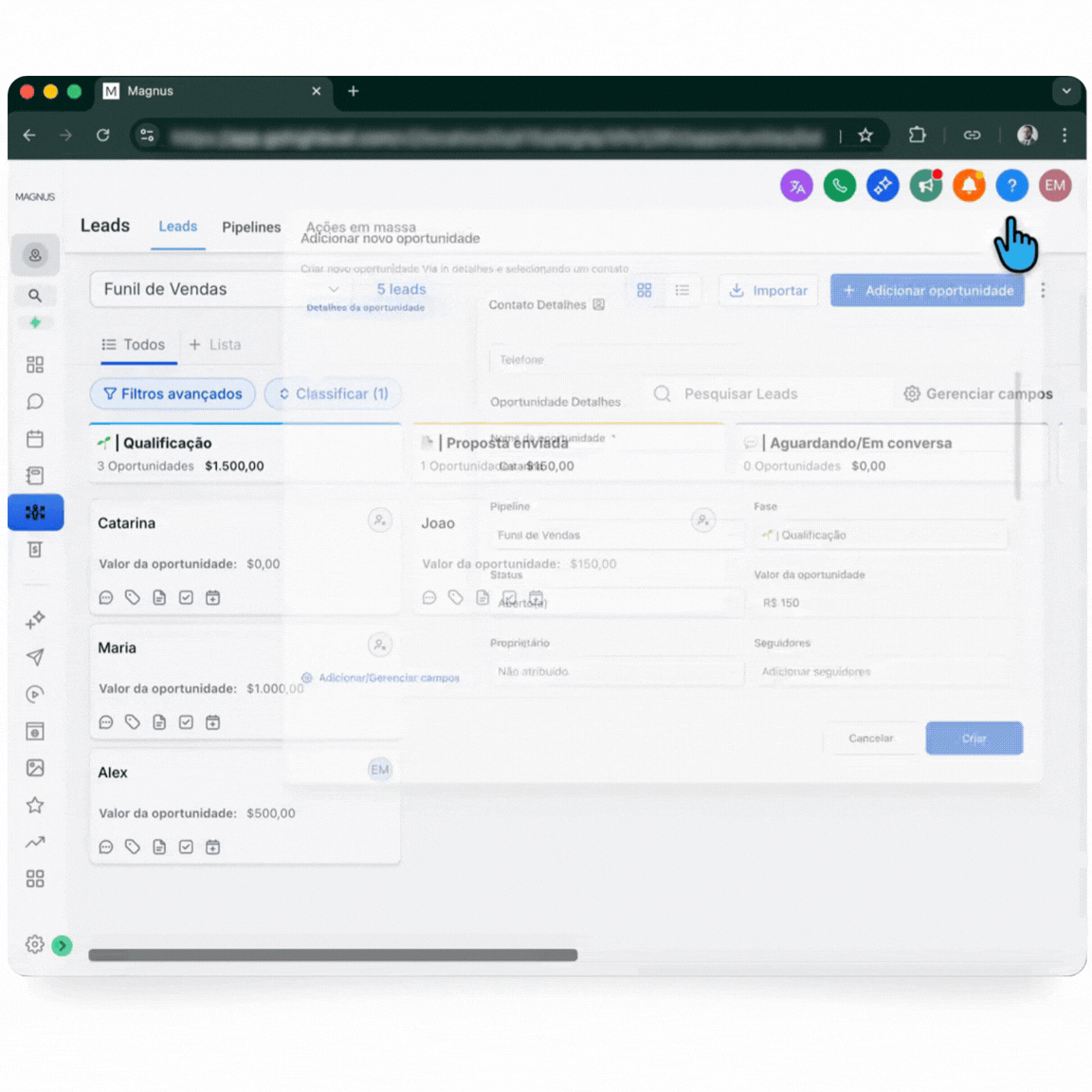 Suas campanhas de tráfego pago direcionam para landing pages otimizadas. Os leads entram direto no CRM com todas as informações.