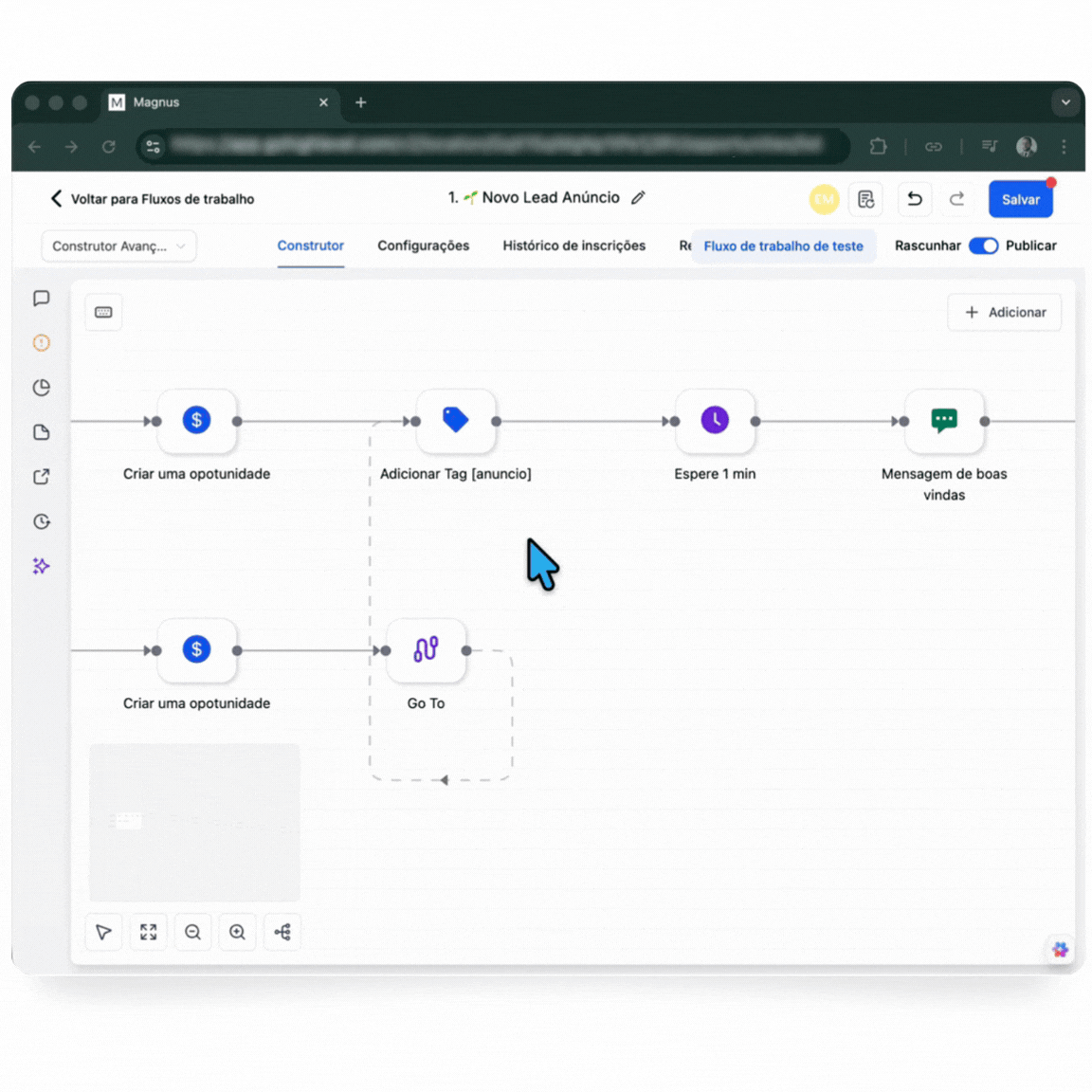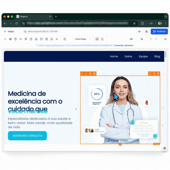 Construtor drag-and-drop de páginas otimizadas para captação de leads. Templates específicos para o setor de saúde, formulários inteligentes e integração direta com CRM e automações.